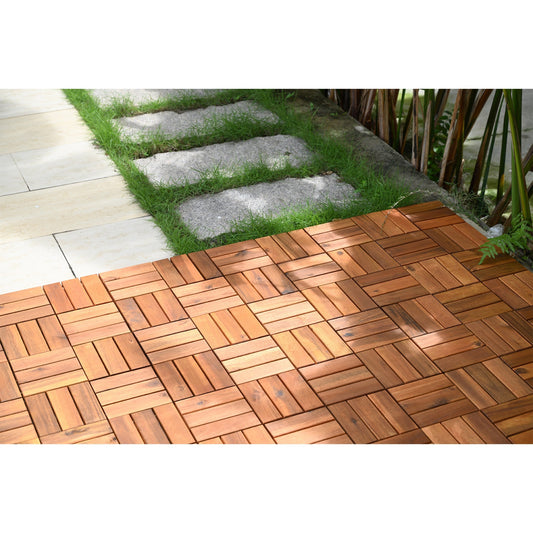 Bliss Outdoors Hardwood 12-Slat Interlocking Wood Deck Tiles, Natural, Set of 30