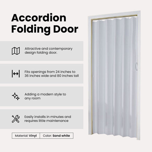 LTL Home Products Contempora Accordion Folding Door, 36 x 80 Inches, Sand White