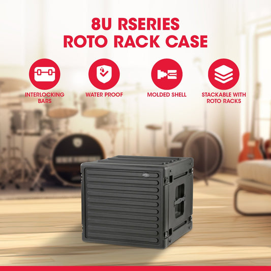 SKB 8U Roto Rack Case Polyethylene Gear Protector, Stackable, Waterproof, Black