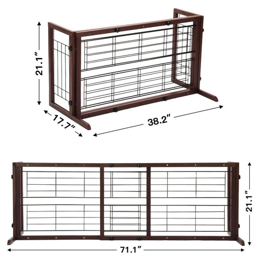COZIWOW Freestanding Dog Gate Indoor with Side Panels for Stairs, 71 In, Brown