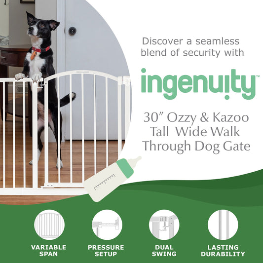 Ingenuity Ozzy & Kazoo 36” Tall Walk Through Dog Gate For Doorway or Stairway