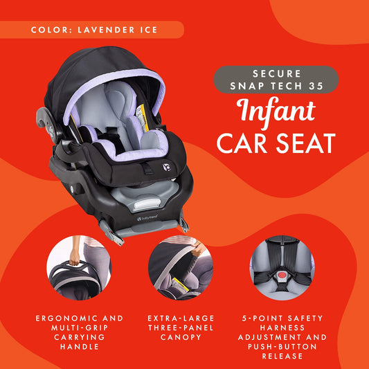 Baby Trend Secure Snap Tech 35 Safe Infant Car Seat Travel System, Lavender Ice