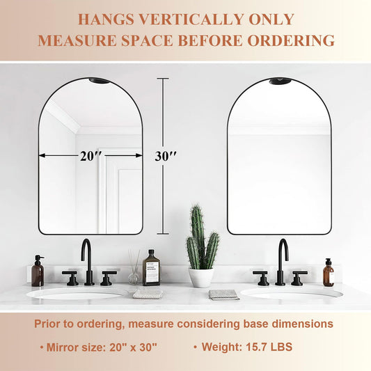 ANDY STAR 20 x 30 Inch Arched Wall Mounted Vanity Mirror with Steel Frame, Black