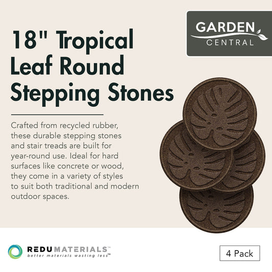 Garden Central 4 Pack 18" x 18" Tropical Leaf Decorative Stepping Stones, Brown