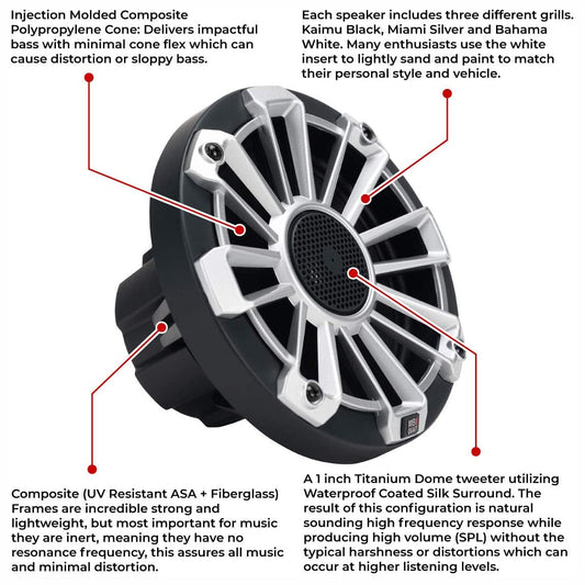 MB Quart NP1-116 Nautic Premium 6.5 Inch Marine Speaker Pair w/ 3 Grills, Black