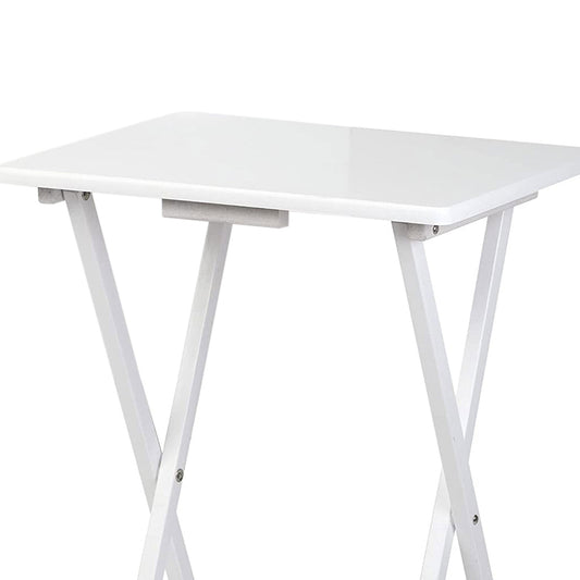 PJ Wood Solid Wood Compact Folding TV Tray and Snack Tables, White, 2 Piece Set