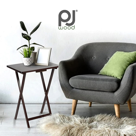 PJ Wood Folding TV Snack Tray Folding Table Desk Stand, Espresso Brown, Set of 2