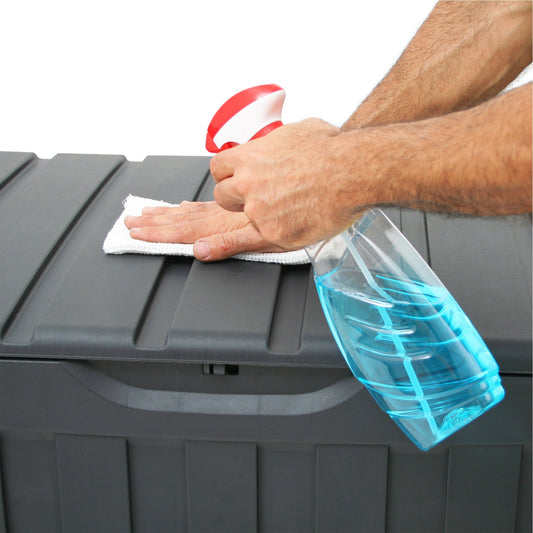 Ram Quality Products Plastic 90 Gal Outdoor Locking Storage Bin Deck Box, Gray