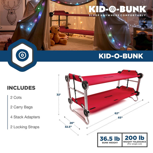 Disc-O-Bed Youth Double Cot Kid-O-Bunk w/ 200 Pound Capacity & Carry Bags, Red