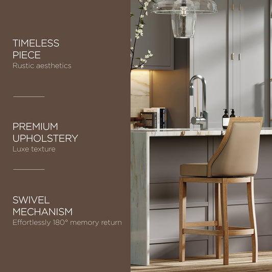 ROME + OAK Runyan Bar Stool, Dark Walnut Finish with Vintage Brown Vegan Leather