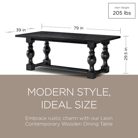Maven Lane Leon Traditional Wooden Dining Table in Antiqued Black Finish