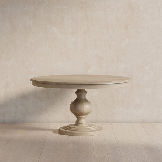 Zola Classical Round Wooden Dining Table in Antiqued White Finish
