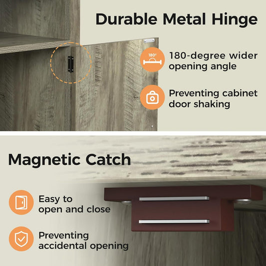 RoyalCraft Farmhouse Nightstand with Charging Station, Set of 2, Light Grey