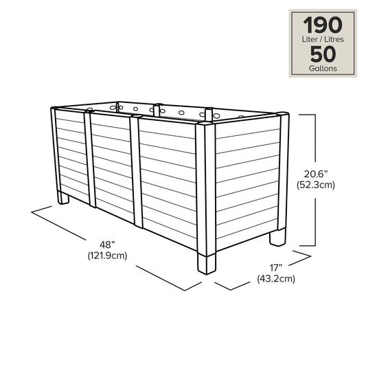 Tierra Verde 17-Inch x 48-Inch Raised Garden Trough Box for Patio or Deck, Khaki