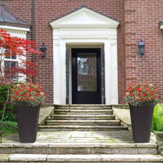 Tierra Verde 2 Pack Aria Round Planter, Self Watering Pot, 15"W x 26"H, Black