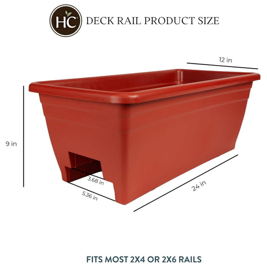 The HC Companies Deck Railing Planter Box with Removable Drain Plugs, 24", Clay
