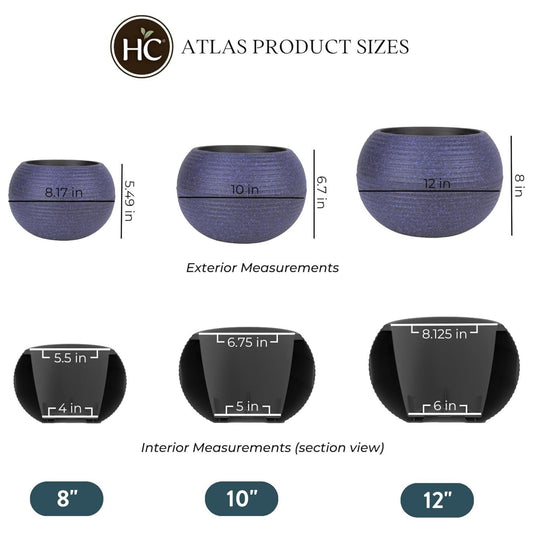 The HC Companies 10 Inch Atlas Sphere Planter, Round Plastic Plant Pot, Blue