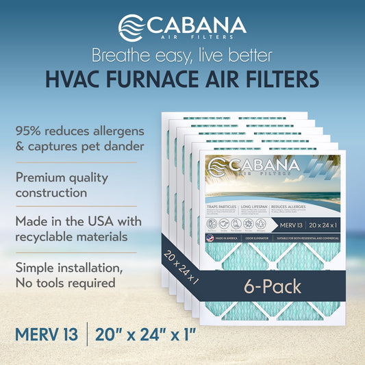 Cabana Air Filters 6 Pack HVAC Furnace Air Filters, MERV 13, 20 x 24 x 1, White