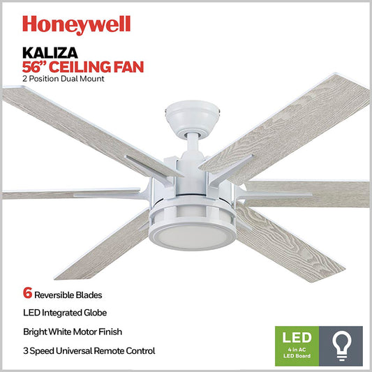 Honeywell Kaliza Ceiling Fan, Quiet Motor and Remote Control, 56", Bright White