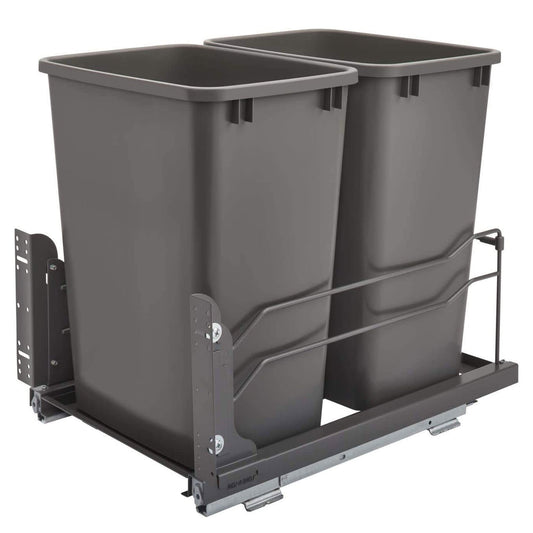 Rev-A-Shelf Double Pullout Trash Can 27 qt. for Kitchen, Gray, RV-15KD-13C-S