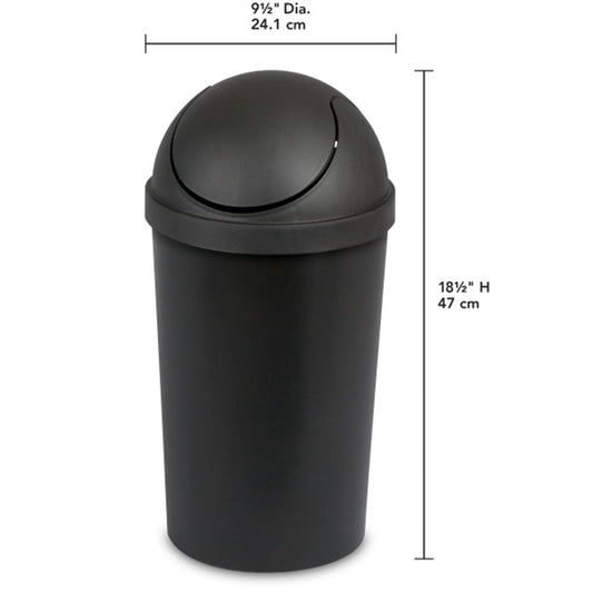 Sterilite 10839006 3 Gallon Round Swing Top Plastic Wastebasket, Black (12 Pack)