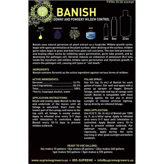 Supreme Growers BANISH Natural Mildew Pathogen Fungicide Concentrate, 2 Ounce