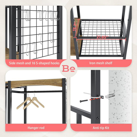 Bestier Metal Freestand Wardrobe w/Wood Shelves & Color Changing Lights, Oak