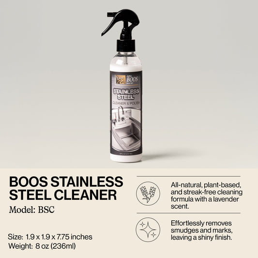 John Boos All Natural 8 Ounce Bottle Stainless Steel Surface Cleaner and Polish