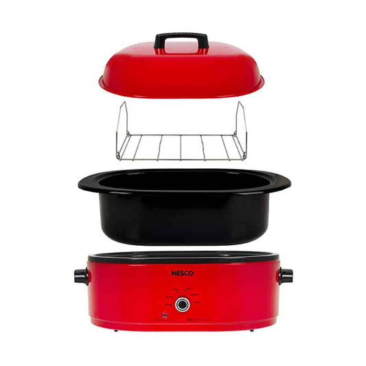 NESCO 18-Qt 1,450-Watt Roaster with Porcelain Cookwell, Chrome Red