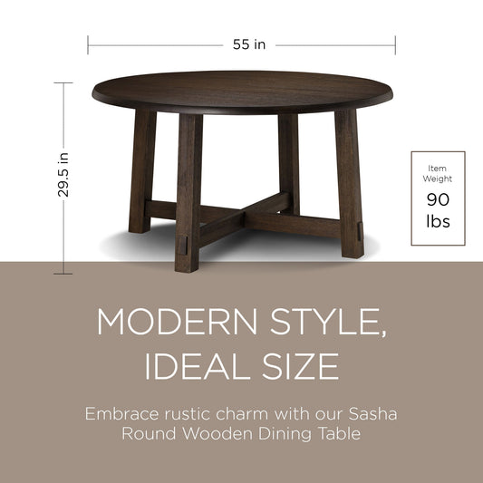 Maven Lane Sasha Round Wooden Dining Table in Weathered Brown Finish