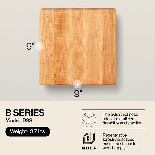 John Boos Small Maple Wood Edge Grain Cutting Board for Kitchen, 9" x 9" x 1.5"
