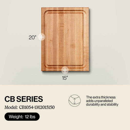 John Boos Large Maple Wood Edge Grain Reversible Cutting Board, 20" x 15" x 1.5"