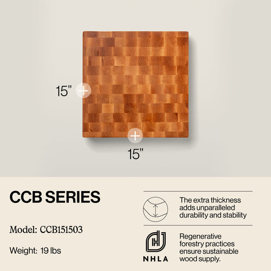 John Boos Medium Maple Wood End Grain Cutting Board for Kitchen, 15" x 15" x 3"