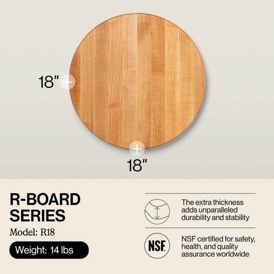 John Boos Maple Wood End Grain Round Cutting Board for Kitchen, 18" x 18" x 1.5"