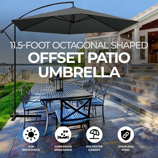 Four Seasons Courtyard 11.5 Foot Offset Patio Umbrella, Charcoal Gray Fabric