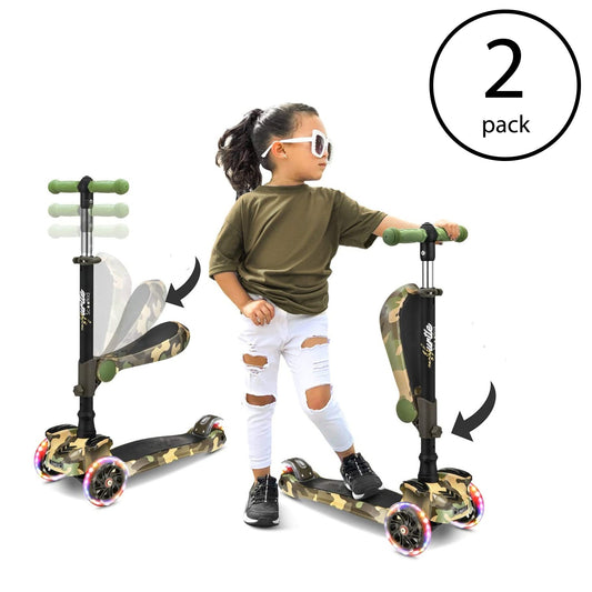 Hurtle ScootKid 3 Wheel Child Toddler Toy Scooter with LED Wheel Lights (2 Pack)