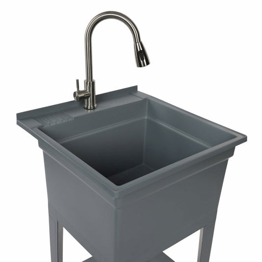 UTILITYSINKS Plastic 24" Freestanding Compact Workshop Utility Tub Sink, Grey