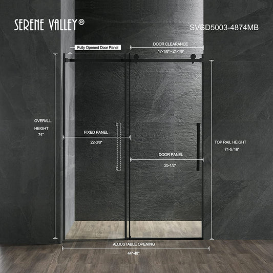 Serene Valley 48 x 74 Inch Square Rail Frameless Sliding Shower Door, Black