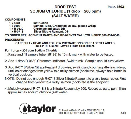 Taylor K-1766 Liquid Pool Spa Sodium Chloride Salt Water Drop Test Kit (2 Pack)