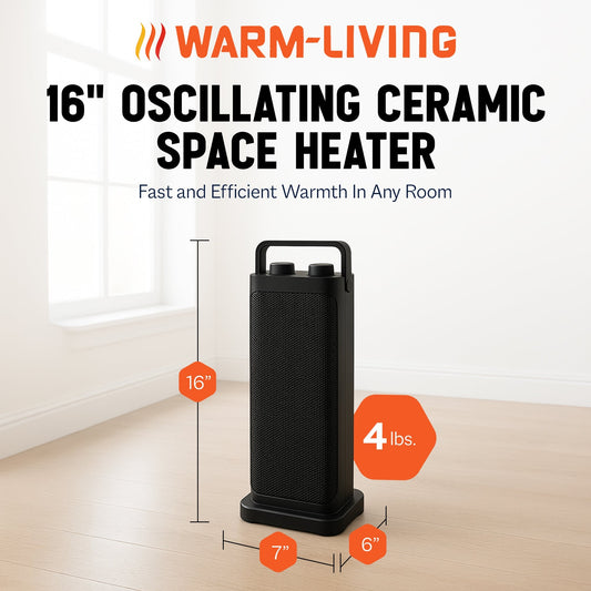 Warm-Living 16" Oscillating Ceramic Space Heater with 3 Heat Settings, Black