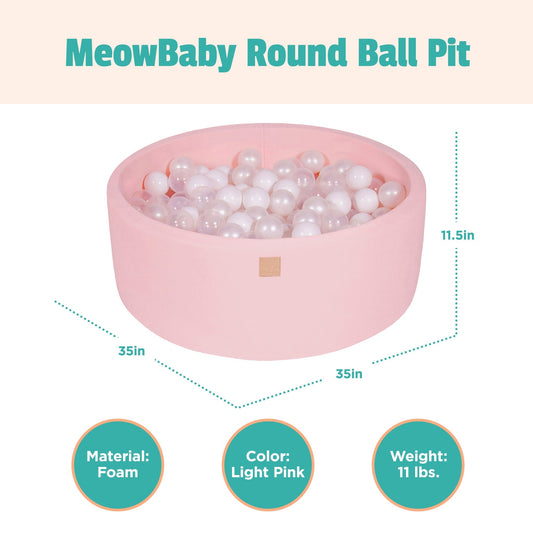MeowBaby Round 35 x 11.5 Inch Baby Foam Ball Pit w/ 200 Balls, Light Pink/Pearl