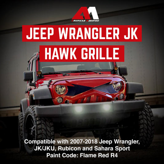 AMERICAN MODIFIED Hawke Front Replacement Grille for 07-18 Jeep Wrangler JK, Red