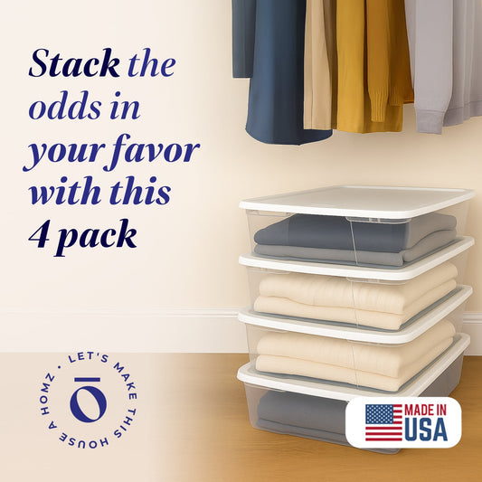 Homz 31qt Clear Plastic Stackable Storage Containers, 4 Pack & 15.5qt, 4 Pack