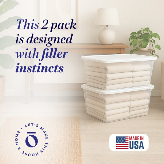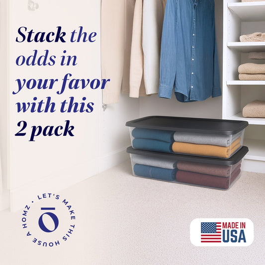 Homz 41 Quart Stackable Plastic Under Bed Storage Containers with Lid, (2 Pack)