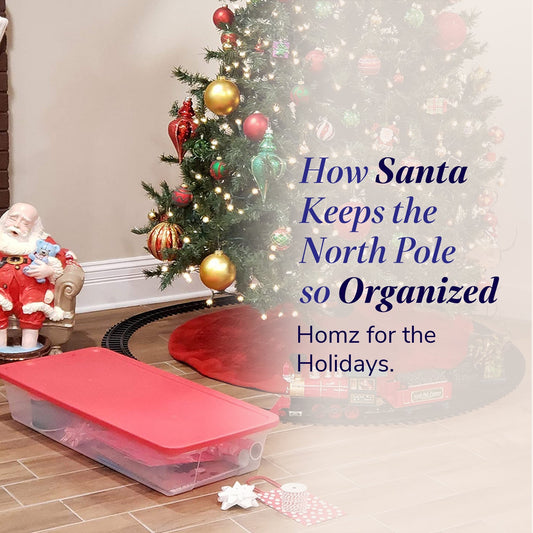 Homz 41Qt Clear Plastic Holiday Storage Container with Red Snap Lock Lid, 2 Pk