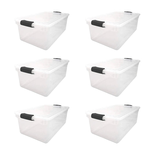 Homz 64 Qt Multipurpose Stackable Storage Bin with Latching Lids, Clear (6 Pack)