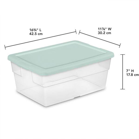 Sterilite 12 Pack 64 Qt Latching Box, Plastic Storage Bin with Lid, Mindful Mint