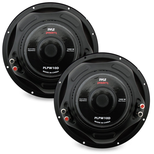 Pyle PLPW10D 10" 2000W Car Subwoofer Audio Power Subs Woofers DVC 4 Ohm, 2 Pack