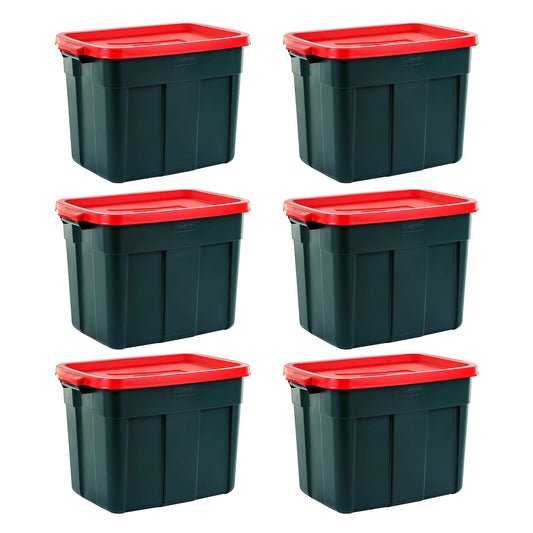 Rubbermaid Roughneck 18 Gal Plastic Holiday Storage Tote, Green and Red (6 Pack)