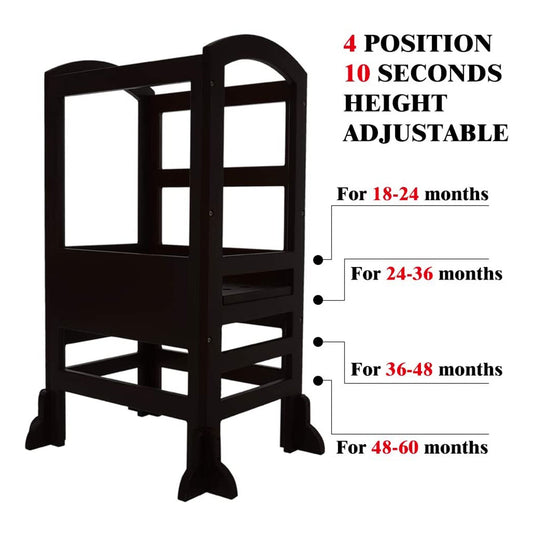 SDADI LT02B Kids Kitchen Adjustable Height Learning Step Stool Tower, Black